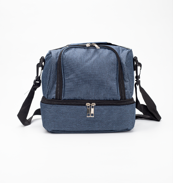 Lunchera térmica de alta capacidad con doble compartimiento diseñada para mantener tus alimentos frescos durante todo el día. Construida con material 300D Oxford resistente al desgarre y revestimiento interior de aluminio con PEVA, garantiza aislamiento térmico superior y durabilidad prolongada. Sus dimensiones de 25 x 35 x 17 cm ofrecen espacio generoso para almuerzos completos, bebidas y accesorios.