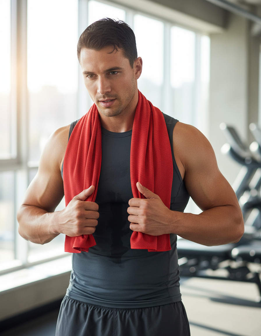 Toalla deportiva de microfibra 100% poliéster, diseñada para máximo rendimiento en actividades físicas e deportivas. Dimensiones de 30 x 100 cm proporcionan cobertura versátil para gimnasio, piscina o entrenamiento al aire libre.